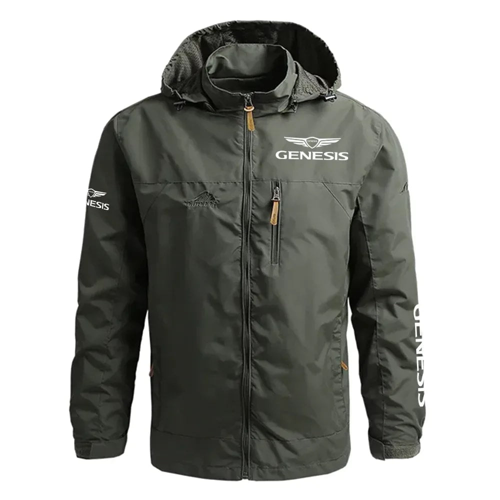 This Genesis Exclusive Logo Waterproof Outdoor Jacket Detachable Hood is designed for year-round wear, making it ideal for spring, fall, and early winter. Versatile enough for everyday casual outfits, business settings, social occasions, and a wide range of outdoor activities including fishing, hiking, cycling, camping, running, golf, travel, and team sports.