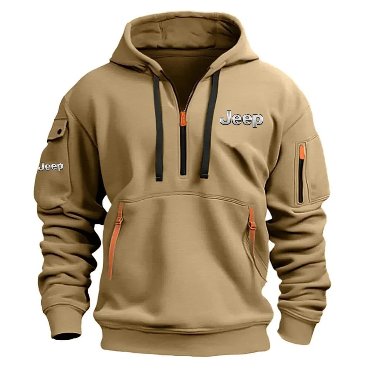 Merging urban style with functional resilience, this Jeep Exclusive Logo Half Zipper Hoodie is a year-round essential. Designed for both metropolitan strolls and nature-bound adventures, it transitions seamlessly between streetwear cool, tactical practicality, and everyday comfort. Ideal for daily commutes, travel, holiday leisure, or active outdoor pursuits such as hiking, cycling, or casual sports. Its structured yet flexible design ensures it retains form while keeping you agile and at ease.