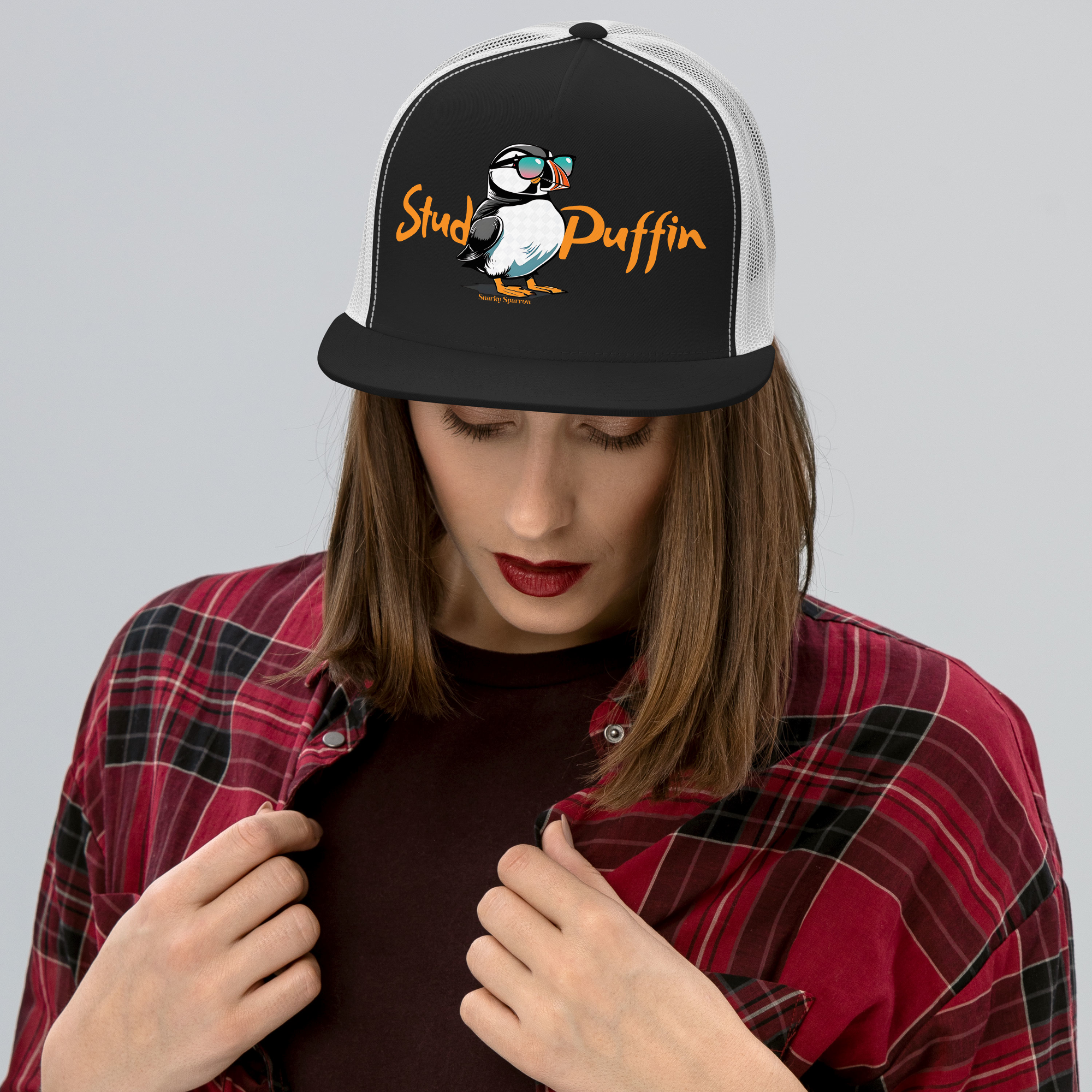 Top off your look with the Stud Puffin hat from SnarkySparrow! Featuring the coolest puffin sporting shades, this hat is perfect for birders and birdlovers who like their style as bold as their puns. Whether you’re out birding or just soaking up the sun, this cap has you covered in puffin swagger. ðŸ§ðŸ•¶ï¸